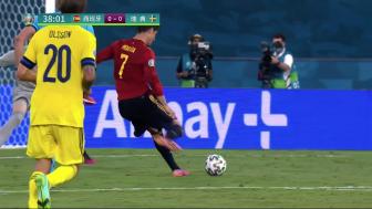 第35分钟,拉尔森右路传中被西蒙托出横梁。第37分钟,阿尔巴左路挑传,丹尼尔森解围失误,莫拉塔禁区内绝佳机会推射打偏了。↓
