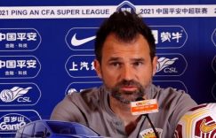 直播吧5月7日讯 5月9日晚8点,广州队将在中超联赛广州赛区第四轮比赛中面对沧州雄狮的挑战。今天下午,广州队主帅卡纳瓦罗携队员严鼎皓出席了赛前新闻发布会。