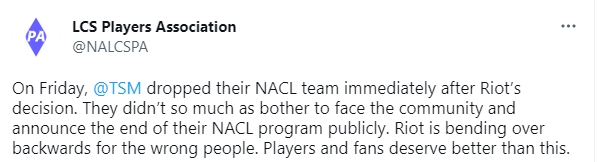 直播吧5月17日讯 此前,有外网流言称TSM因加密货币交易所FTX的倒闭而损失惨重,将砍掉多项电子竞技业务,今日LCS选手协会证实,TSM 放弃了次级联赛的战队。