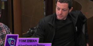 在众人的围观下,翻牌发出7♣️A♠️4♦️,看到这里,围观的人都“哗”声大作,邬庆军也站了起来,无奈笑笑,
