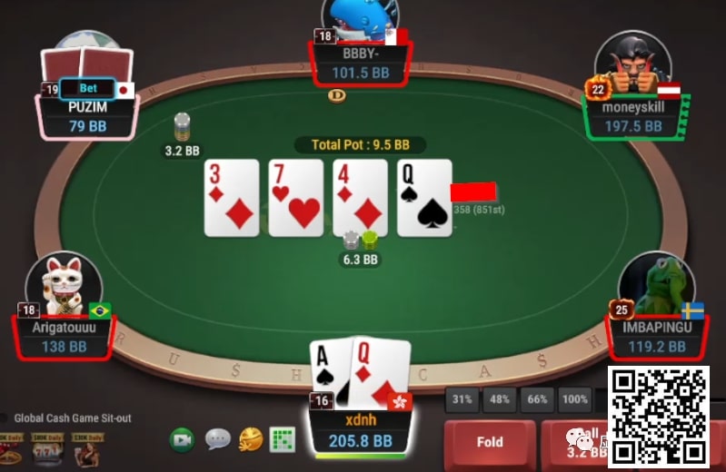 转牌:Q 底池 6.3BB