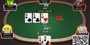 仅过20分钟,第12名就宣告诞生。当时,短码的黄驿翔翻前在CO位用A♠T♥ all-in 130多万,被SB位张志拿着A♦J♣ 接下。公共牌掉出T♣K♠4♣J♠3♠;张志收池,黄驿翔止步主赛12名。