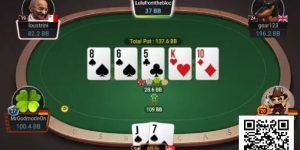 随后在一个A♦T♥7♥J♦T♣的牌面上,周懿楠用K♥Q♥击中了顺子,打败Addamo的A♥K♦,一举成为筹码领先者,并在之后的大部分时间都保持着领先地位。