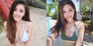 仔細一看~妹子根本沒穿內衣的習慣,全身上下只有一塊布料圍住,下半身似乎也沒有底褲,真的是一個刺激的畫面阿~