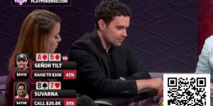 转牌的J♣️则是帮助他击中逆转,而河牌的10♦️让围观选手都哗了出来,一时间许多双眼睛都转过来看着一桌,