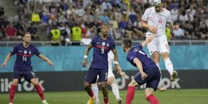 直播吧6月29日讯 北京时间6月29日凌晨3点整,2020欧洲杯1/8淘汰赛在布加勒斯特国家竞技场展开角逐,法国对阵瑞士。上半场塞费罗维奇先拔头筹,法国暂时0-1落后瑞士。