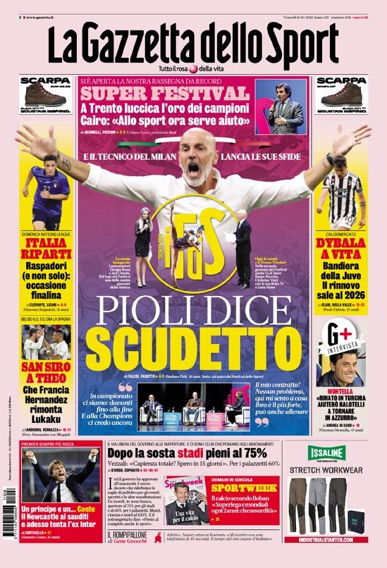 直播吧10月8日讯 米兰体育报、罗马体育报、都灵体育报是意大利的三大体育报,今天我们来看看它们各自的头版头条都带来了哪些内容。
