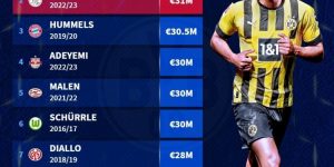 在此之前,多特已经签下了聚勒、施洛特贝克、阿德耶米、厄兹詹、迈尔和洛特卡,而从曼城来投的门将布拉夫则是加盟多特B队,因此阿莱是多特一线队今夏的第七笔签约。