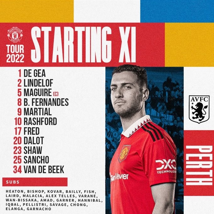 直播吧7月23日讯 北京时间17:45,曼联季前热身赛第四战迎战阿斯顿维拉,双方首发阵容已出炉!马奎尔、范德贝克、马夏尔先发,库蒂尼奥出战。麦克托米奈参与了训练但是没有进入大名单。