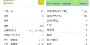 西甲第5轮,皇马4-1逆转马洛卡,巴尔韦德、维尼修斯、罗德里戈、吕迪格各入一球。