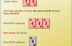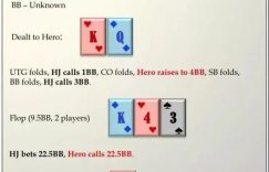 转牌:5♥。HJ位置全下75.2BB,Hero应该弃牌吗?翻后是一个奇异的剥削世界。翻牌圈要接受的最重要事实,是Hero是否在牌局中某个时刻打光筹码的决定立即发生,且完全取决于是否他现在跟注还是弃牌。当然,在翻牌圈加注是离谱的,但尽管如此,是否游戏所有筹码的决定必须立刻确定。平均而言,对手翻牌圈做超过两倍底池大小的诈唬然后在转牌圈放弃的范围非常小。因此,翻牌圈跟注然后在之后弃牌纯粹是烧钱。