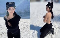 性感長腿妹「羅莉Rolly」韓國玩耍,雪地裡「上空秀裸背」讓人零下也熱起來!