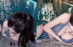 巨乳DJ「Vely」在泳池畔被巨乳卡住!渾圓白嫩雙球變成障礙
