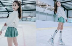 桃園滑冰場出現「長腿正妹」莎莎!超短百褶裙讓「絕對領域」若隱若現好撩人!