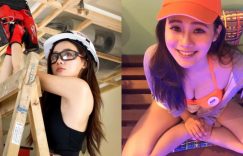 工程中若有這款正妹一起工作,一定幸福感爆表!眼前這位性感又帥氣的妹子就是【少圓Yuan】,戴著工地安全帽和防護眼鏡,仍然看得出是個五官精緻的妹子,穿著輕便的黑色吊嘎就爬上梯子施作天花板,噴發的女神光讓所有老司機都甘拜在她的性感美體下! (圖片來源: