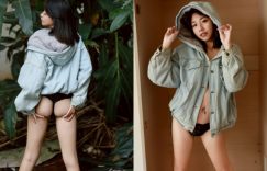 屁股控看過來,這樣的背殺可是前所未有!眼前穿著藍色外套的妹子就是「米果Migo」,上面過著冬天,下面過夏天,褲子直接失蹤剩下黑色的丁字褲,小手往後邊肉肉一提真是不得了,渾圓有肉的屁屁就這樣衝擊了大家的視線,銷魂的臀肉搭上美腿,還不用轉身就已殺遍滿江! (圖片來源: ▶ ▶