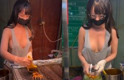 士林烤魷魚攤老闆娘穿超「啷」吊嘎散熱 美乳竟快掉出來