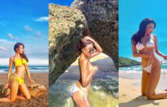 在海邊寬衣解帶!「美乳正妹」捧奶又露南半球,輕拉褲帶讓人慾火中燒!