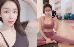 辣!美乳運動正妹「戴口罩拉筋」,誘惑乳溝看了超明顯!