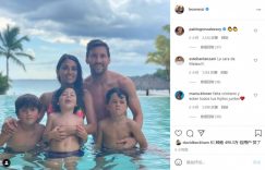 直播吧7月24日讯 梅西今日在Instagram上晒出自己与妻子安东内拉以及三个孩子在泳池中的合影,一家五口其乐融融。