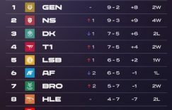 直播吧7月19日讯 lck夏季赛第六周积分榜更新,GEN依旧坐稳榜首,NS磨合越发成熟,近期喜获4连胜;目前暂居第2(与第1仅有一个胜场差);