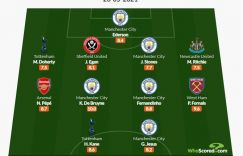 Whoscored英超收官战最佳阵:德布劳内满分,凯恩、佩佩在列