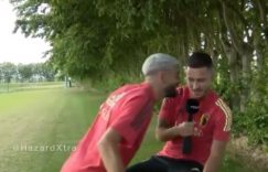 直播吧6月3日讯 近日在备战欧洲杯的比利时国家队内出现了搞笑的一幕,当阿扎尔在接受媒体采访时,卡拉斯科突然乱入,充满炫耀感地用西班牙语对阿扎尔贴面唱“马竞是冠军”,阿扎尔被卡拉斯科逗笑,用西班牙语回应说:“很好!我的朋友,祝贺你!”