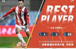 直播吧5月12日讯 今天,中甲联赛官方公布了中甲第4轮最佳球员评选结果,来自成都蓉城的刘若钒当选。